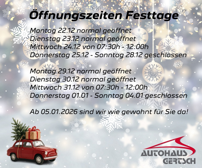 Wir wünschen Ihnen frohe Festtage und eine gute Fahrt ins 2026!